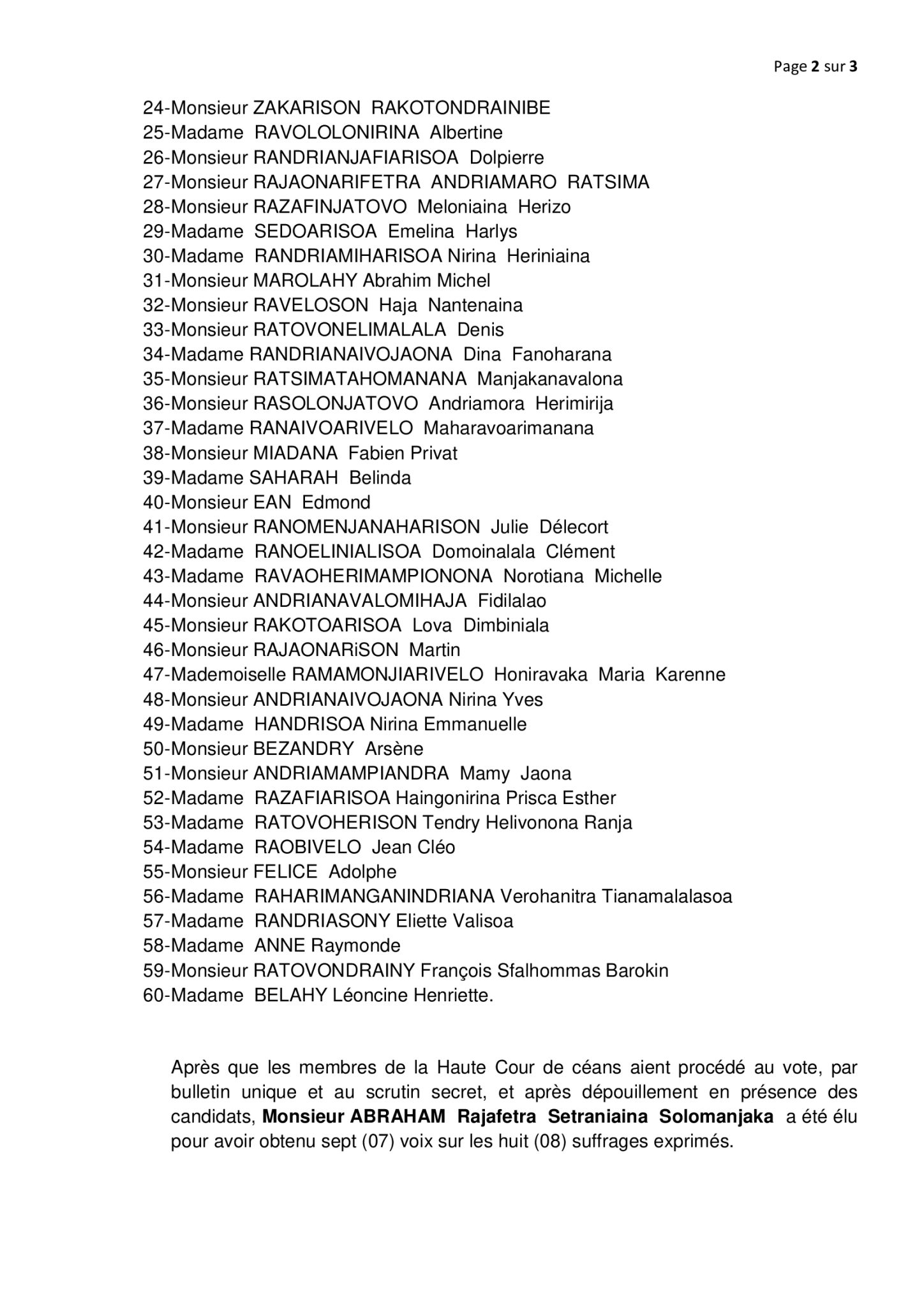 Election du représentant de la Haute Cour Constitutionnelle auprès de la Commission Electorale Nationale Indépendante